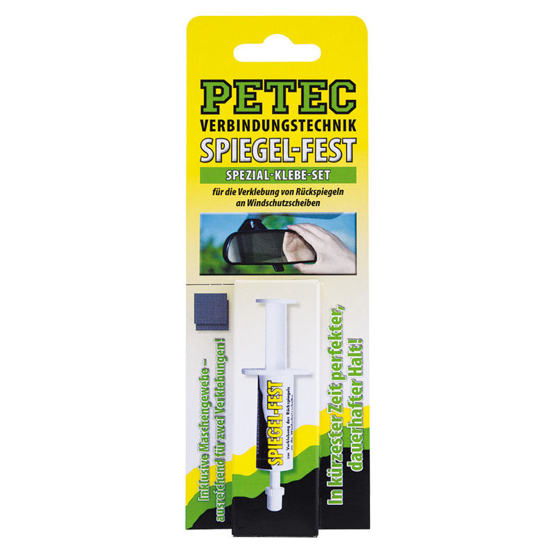 Das Spezial-Klebe-Set zur Verklebung des Rückspiegels an die Windschutzscheibe. Das Klebe-Set kann auch zur Befestigung von Antennen, Sperren usw. an Fenstern verwendet werden.