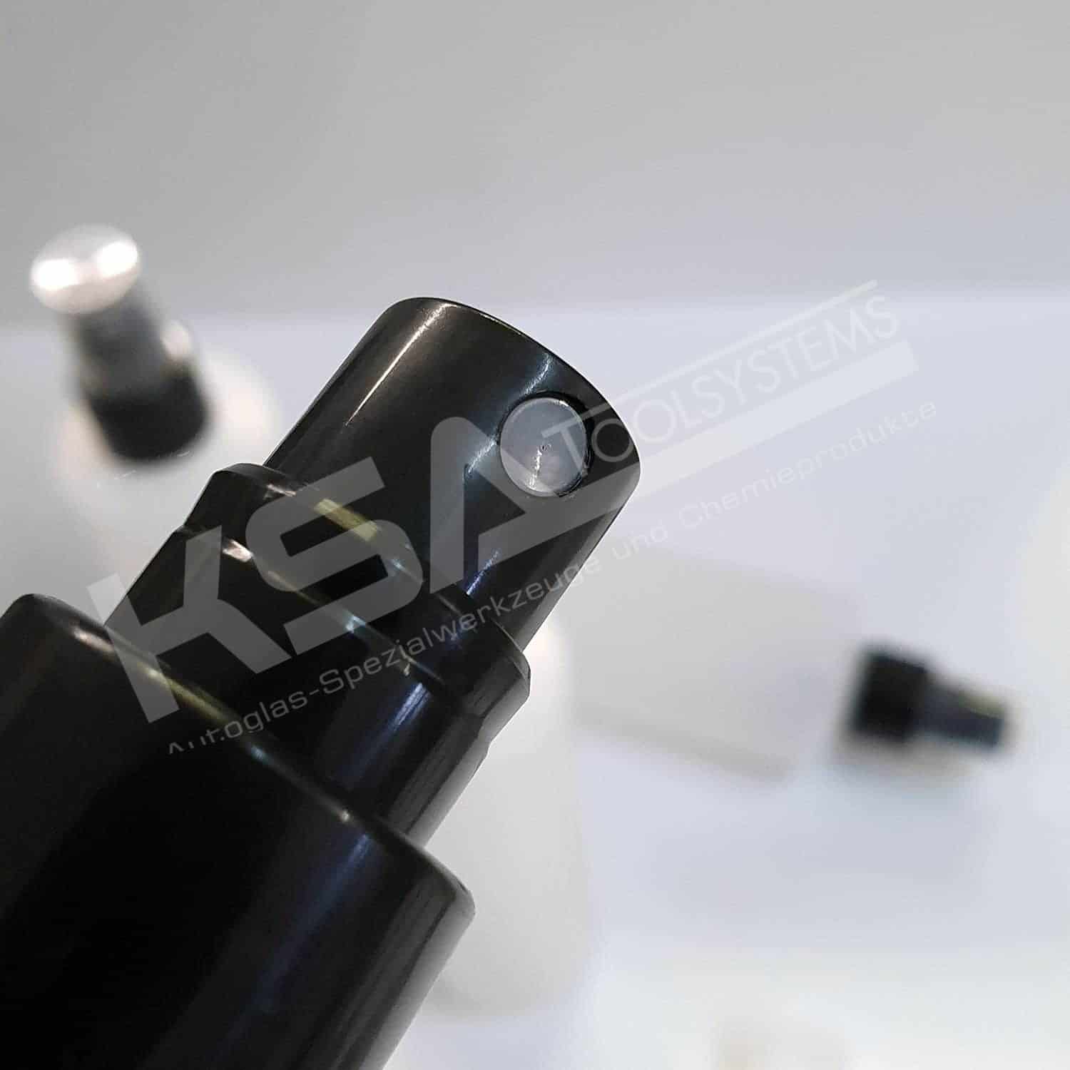 Durch die verbaute Gewindedichtung wird ein auslaufen von Flüssigkeiten verhindert. In Kombination mit der Schutzkappe, welche ein versehentliche Betätigung ausschließt, ist die Sprühflasche transportsicher und auch Überkopf dicht.