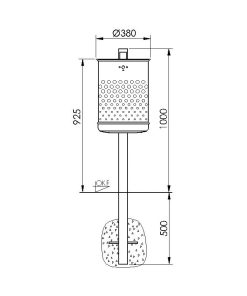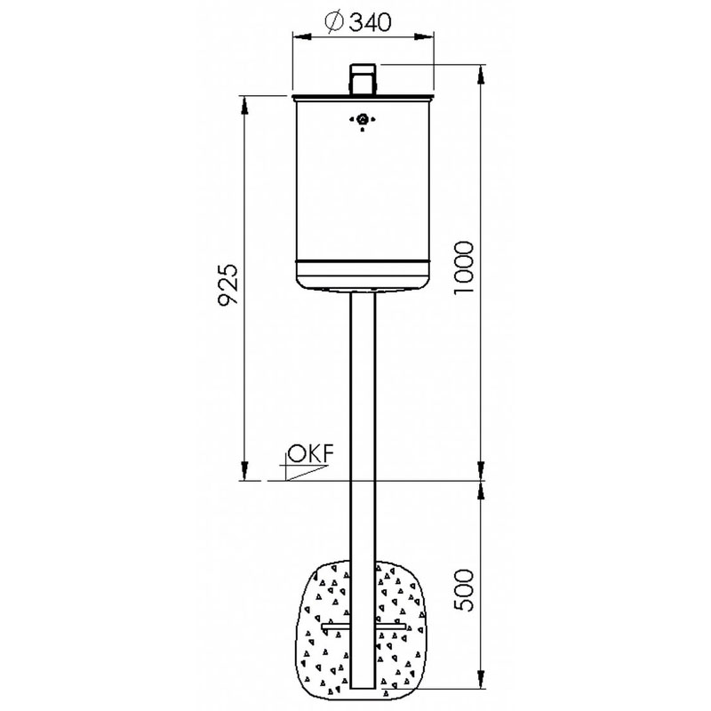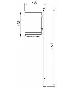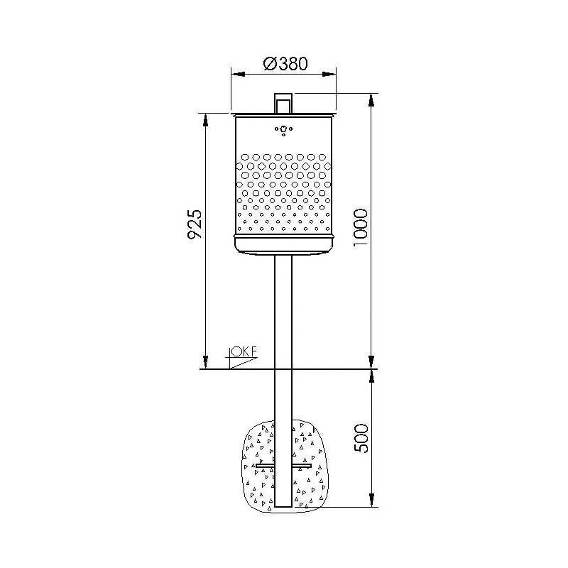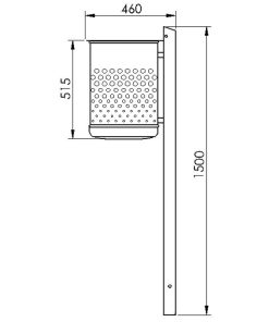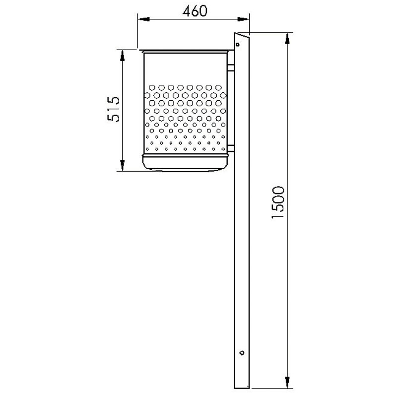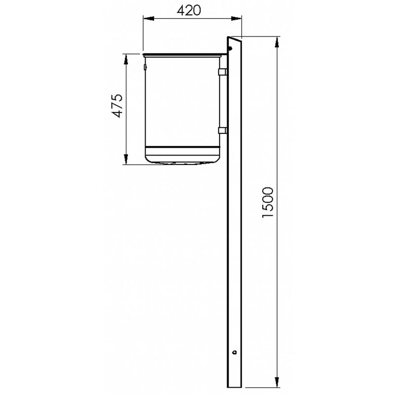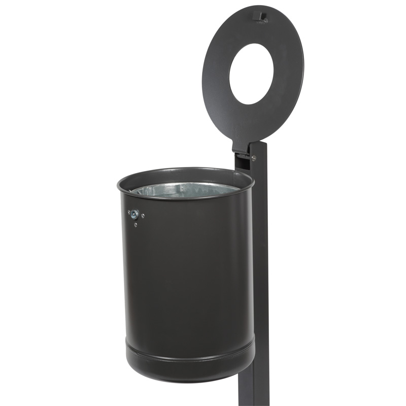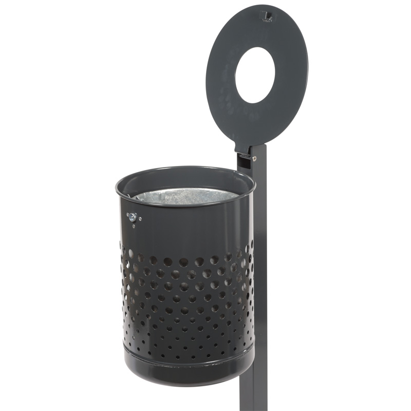 Standabfallbehälter am Pfosten 35 oder 50 Liter, optional gelocht, Typ 7038 / 7039