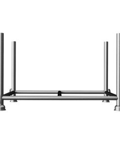 Die Standrohre des Lagergestells bestehen aus besonders dickem Rundrohr mit 57 mm Durchmesser aus verzinktem Stahl, die Querholme messen 48,3 mm. Durch die stabile Verarbeitung besitzt die Stapelpalette eine Tragkraft von bis zu 1,5 t. Das Füllmaß beträgt 1300 x 700 x 700 mm.