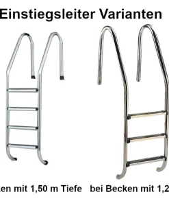 Einstiegleiter 3-stufig bei 125 cm Beckentiefe, 4-stufig bei 150 cm Beckentiefe