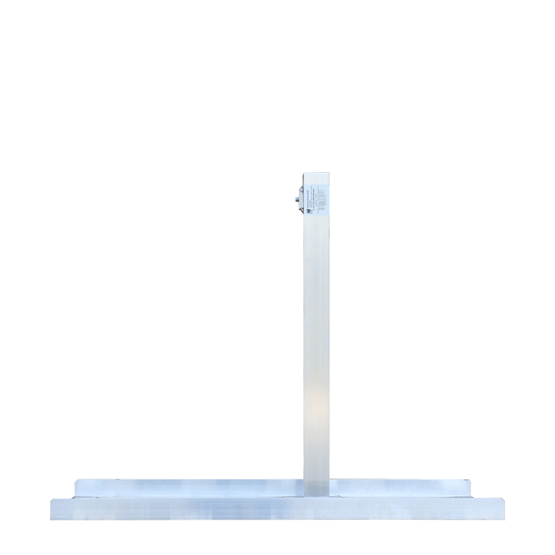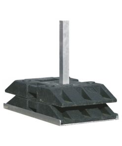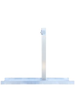 Der Aluminium-Schilderständer in der kurzen Bauform hat mittig einen viereckigen Standholm zur Aufnahme eines Schaftrohres 40 x 40 mm.