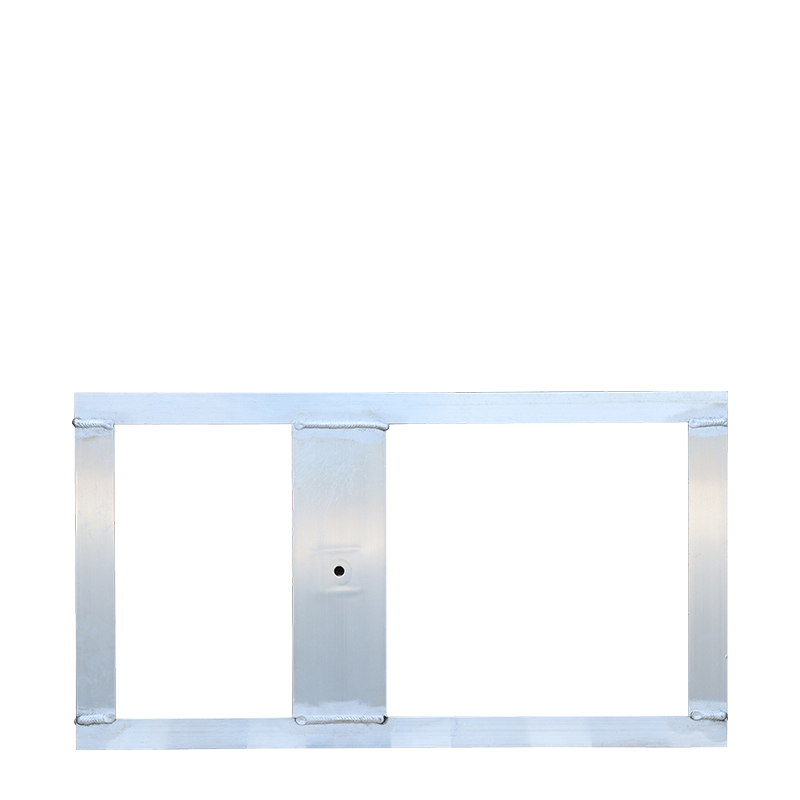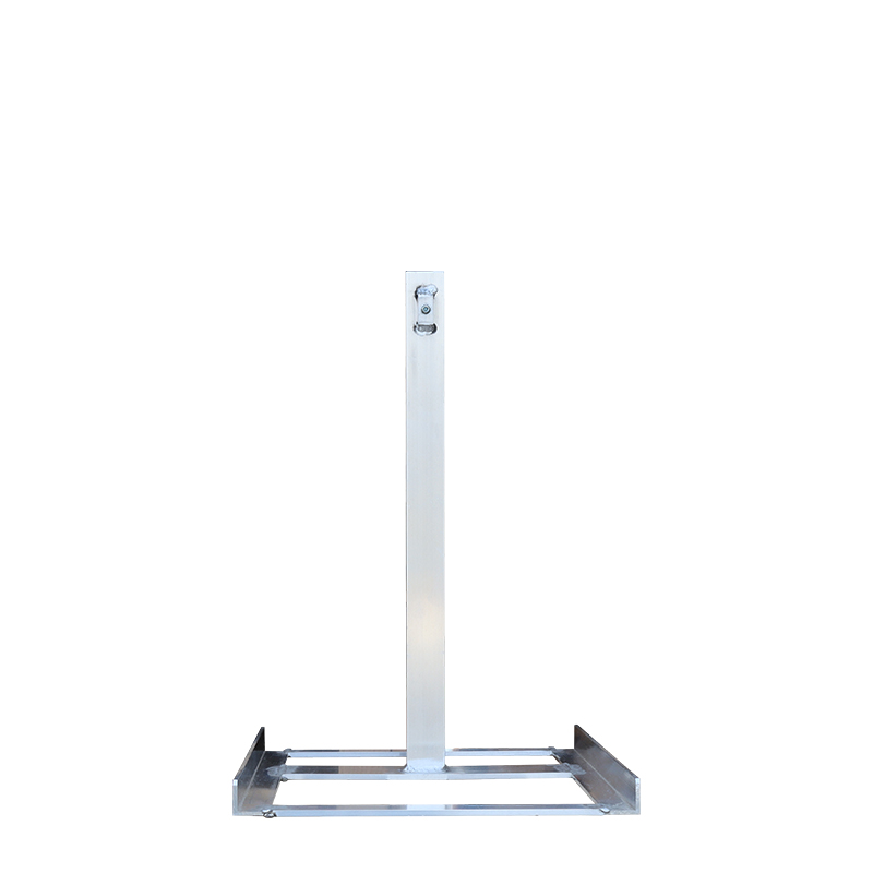 Im Schilderständer Größe 2 können Sie bis zu vier K1-Fußplatten über dem Holm standsicher stapeln. Zum sicheren Halt der Fußplatten ist das Gestell beidseitig längs gekantet.