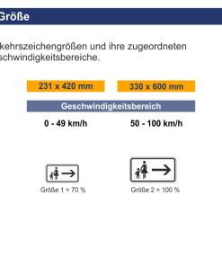 Einsatz: Das Zeichen 1000-22 wird unmittelbar unterhalb des Verkehrszeichens, auf das es sich bezieht, montiert. So kann beispielsweise VZ 123 „Arbeitsstelle“ durch die Zusatztafel 1000-22 ergänzt werden, um darauf hinzuweisen, dass Fußgänger die Baustelle umgehen können, indem sie den gegenüberliegenden Gehweg rechts nutzen.