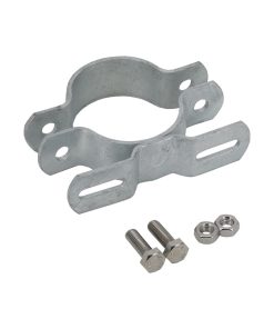 Die verzinkte Rohrschelle mit 48, 60 oder 76 mm Durchmesser befestigen Sie mit 2 mitgelieferten Schrauben M8 x 25 und Muttern. Bei Bedarf sind auch Edelstahlschrauben V2A lieferbar.