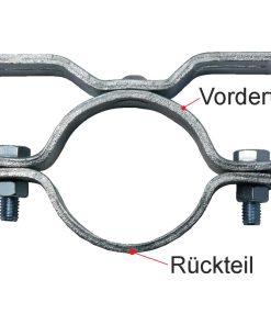 Die beliebteste Version ist die verzinkte Rohrschelle mit 60 mm Durchmesser und 350 mm Lochabstand.