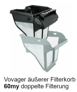 Filterkorb: 60 Mikrometer zur Doppel-Korb-Nutzung! Äußerer Filterkorb für doppelte Filterung.