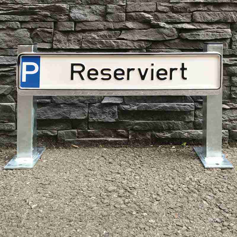 Mit unserer Haltevorrichtung für Parkplatzbeschilderung erhalten Sie eine stabile und optisch schöne Schilderhalterung. Perfekt für die dauerhafte und sichere Aufstellung von Parkplatzschildern und PKW-Kennzeichen.