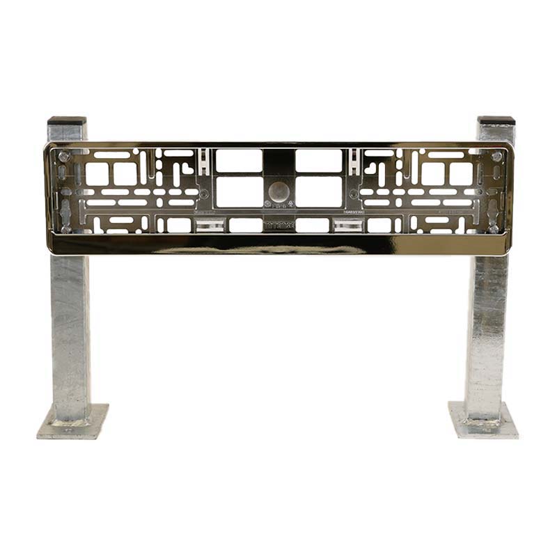 Wir liefern Ihnen den verzinkten KFZ-Kennzeichenhalter aus Stahl zum Einbetonieren oder mit Fußplatten inkl. Bohrungen zum Aufdübeln auf den Boden. Passend dazu bieten wir Ihnen für die Beschilderung und Kennzeichung von Stellflächen unsere Parkplatzschilder an.