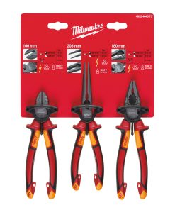 Zangenset 3-teilig, VDE geprüft – Seitenschneider 160 mm, Langbeck-Rundzange, Kombizange 180 mm